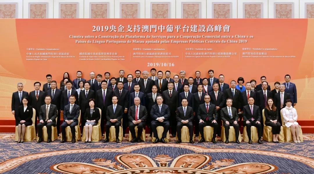 10月16日,由澳门特区政府、国务院国资委主办,澳门特区政府经济财政司承办,澳门中联办支持的“2019央企支持澳门中葡平台建设高峰会”在澳门威尼斯人酒店举行。澳门特区行政长官崔世安,全国政协副主席何厚铧,国务院国有资产监督管理委员会党委书记、主任郝鹏,澳门中联办主任傅自应,外交公署特派员沈蓓莉,佛得角工商业与能源部部长亚历山大•蒙特罗,澳门特区立法会主席高开贤等出席并主礼。崔世安、郝鹏、傅自应分别致辞,亚历山大•蒙特罗、国家开发银行副行长刘金分别作主题发言。集团董事长傅建国、总经理段洪义、副总经理罗群、总会计师彭晋鸿出席会议,傅建国代表集团与国新国际投资有限公司董事长周渝波签署关于境外投资合作框架协议。集团有关单位负责人参加综合讨论环节及央企与澳门金融界对接交流会。
