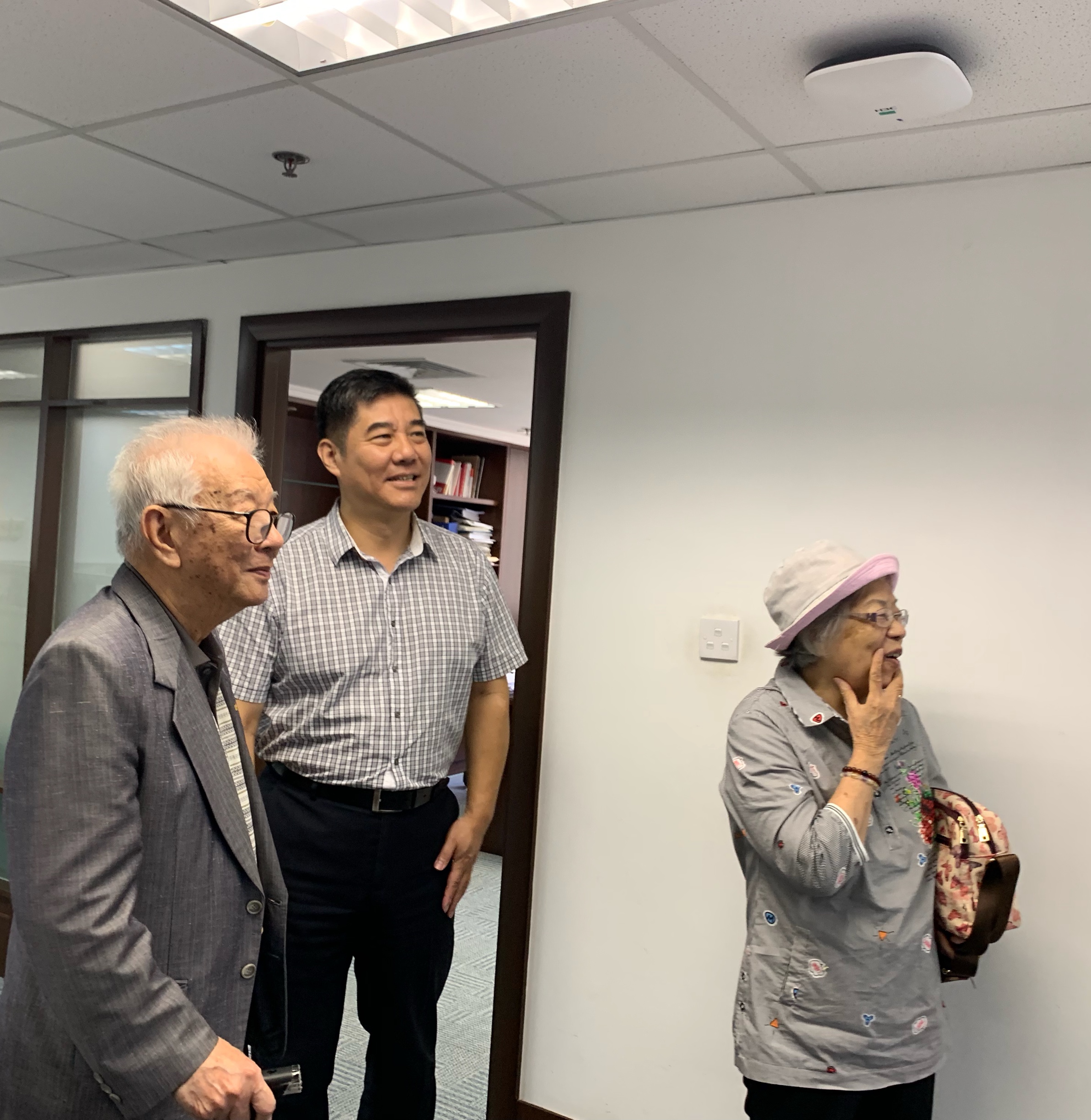 8月14日,南光物流退休老领导黎良先生应邀参加“庆祝集团成立70周年”访谈拍摄;拍摄完成临近中午时分,一直念叨着要回“家”看看的黎老,在夫人的陪同下,回到日夜思念的“家”—南光大厦十四楼南光物流有限公司。