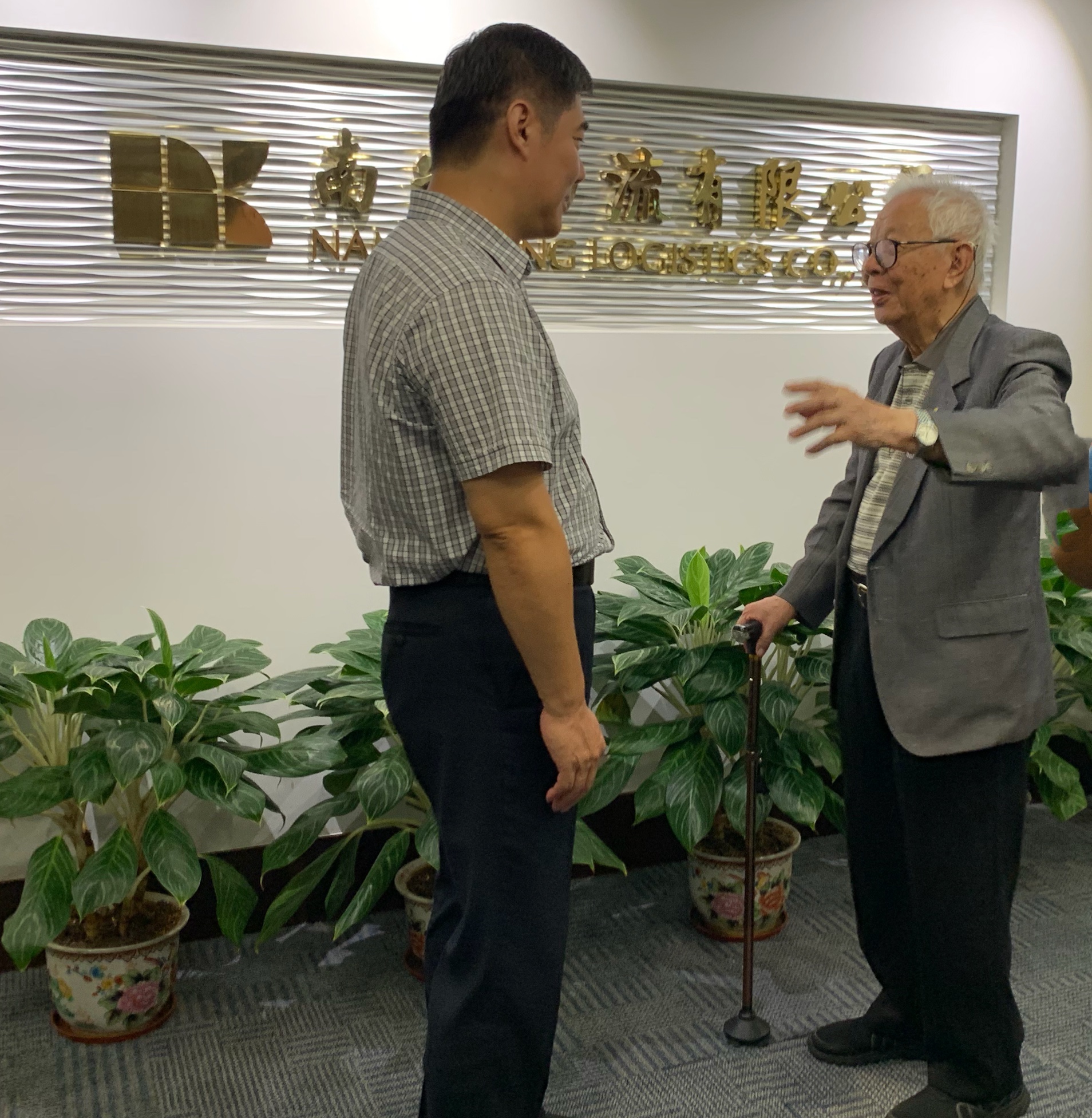 南光物流总经理张清热烈欢迎黎老夫妇“回家”,他轻扶着90高龄的黎老,轻声询问黎老夫妇的身体状况、子女情况和退休后的生活情况;随后陪着黎老参观了南光物流各职能部室办公室,边参观边向黎老介绍公司的发展情况,并向在场员工介绍黎老取得的工作荣誉。