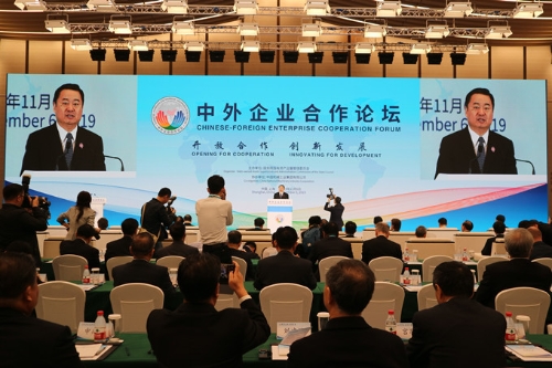 6日上午,中外企业合作论坛在国家会展中心(上海)正式举行。论坛分为嘉宾致辞、见证签约和对话三个单元。单元一由中央企业交易团团长、国资委副主任任洪斌主持,国资委党委书记、主任郝鹏发表题为《坚持开放合作 携手创新发展》的主旨演讲。联合国贸易和发展会议秘书长穆希萨·基图伊,上海市委副书记、市长应勇,希腊海运与岛屿政策部部长亚尼斯·普拉基奥塔基斯,国际电工委员会主席、中国华能董事长舒印彪分别致辞。有关中央企业负责人参与签约和对话环节。