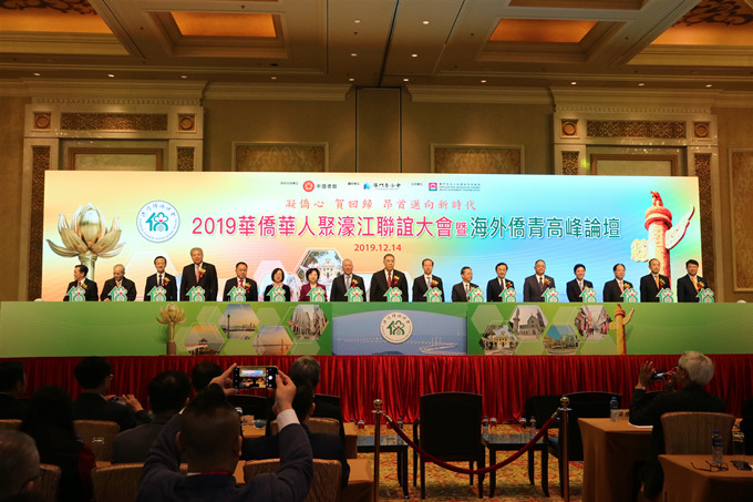 12月14日上午,澳门归侨总会在澳门金沙城中心喜来登酒店举办2019华侨华人聚濠江联谊大会暨海外侨青高峰论坛开幕式,澳门中国企业协会会长、集团董事长傅建国与澳门特区行政长官崔世安,全国政协副主席何厚铧,澳门中联办主任傅自应,外交公署特派员沈蓓莉,澳门立法会主席高开贤,澳门特区政府社会文化司司长谭俊荣,中国侨联副主席、广东省侨联主席黎静,全国政协常委、中国侨联副主席余国春,中国侨联副主席、澳门归侨总会会长刘艺良等嘉宾共同出席并主礼。