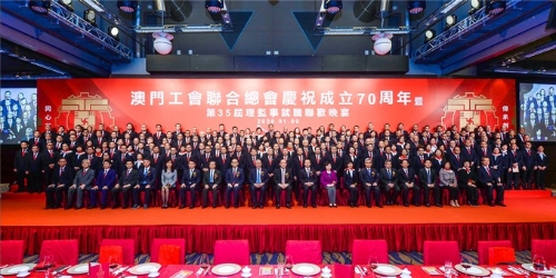 1月9日晚,集团董事长傅建国在澳门旅游塔出席澳门工联总会庆祝成立70周年暨第35届理监事就职联欢晚宴。澳门特区行政长官贺一诚,全国政协副主席何厚铧,澳门中联办主任傅自应,中华全国总工会副主席江广平,外交公署特派员沈蓓莉,澳门特区立法会主席高开贤,广东省总工会常务副主席陈伟东,澳门工联总会会长何雪卿,澳门特区政府经济财政司司长李伟农、保安司司长黄少泽、社会文化司司长欧阳瑜、运输工务司司长罗立文,香港工联会会长吴秋北等嘉宾共同出席主礼。