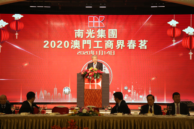 1月14日,南光集团假万豪轩举行2020澳门工商界春茗晚宴,澳门立法会主席高开贤、澳门特别行政区经济财政司司长李伟农、中联办秘书长王新东、澳门贸易投资促进局主席刘关华、澳门经济局代局长陈子慧、澳门特别行政区政府能源业发展办公室首席顾问高级技术员张家祥、澳门中华总商会永远荣誉会长许世元,澳门工商界知名人士、澳门中资企业精英及社会各界,与集团领导班子、总部各职能部室和部分二级公司负责人出席晚宴,共聚一堂,场面热烈。