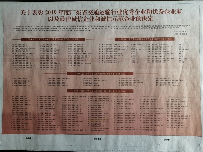 3月30日,《羊城晚报》登刊交通运输部、广东省交通运输厅表彰2019年度为交通运输诚信、安全作出贡献的企业,南光物流属下珠海市南岐特种货物运输有限公司榜上有名,被广东省交通运输协会授予“2019年度广东省交通运输诚信示范企业”荣誉称号。