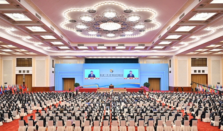 国家主席习近平在第三届“一带一路”国际合作高峰论坛开幕式并发表题为《建设开放包容、互联互通、共同发展的世界》的主旨演讲,宣布中国支持高质量共建“一带一路”的八项行动,强调中方愿同各方深化“一带一路”合作伙伴关系,推动共建“一带一路”进入高质量发展的新阶段,为实现世界各国的现代化作出不懈努力。