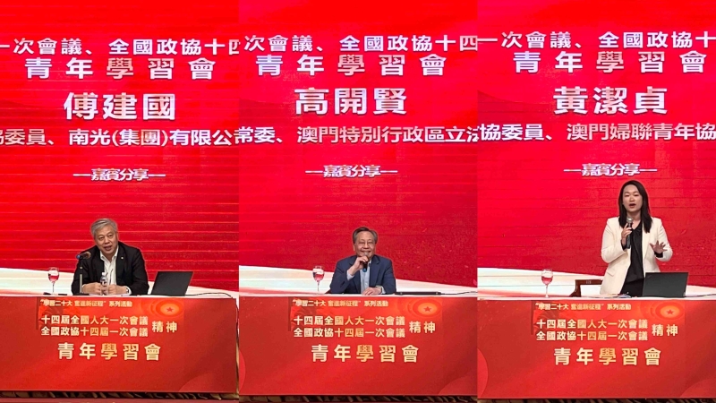 傅建国从二十大精神和重要成果分享出发,立足国家全面深化改革和高水平对外开放的新时代大背景,引导与会者在学习领会两会精神中打开思路、把准脉络、看清精髓要义,勉励青年坚持勤学深思、深入调研实践,实干担当作为,立足澳门为强国建设和民族复兴团结奋斗。