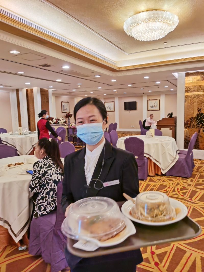 南光澳中旅下属濠璟酒店餐饮服务部员工在工作中以富有感染力的微笑把快乐带给每位顾客。