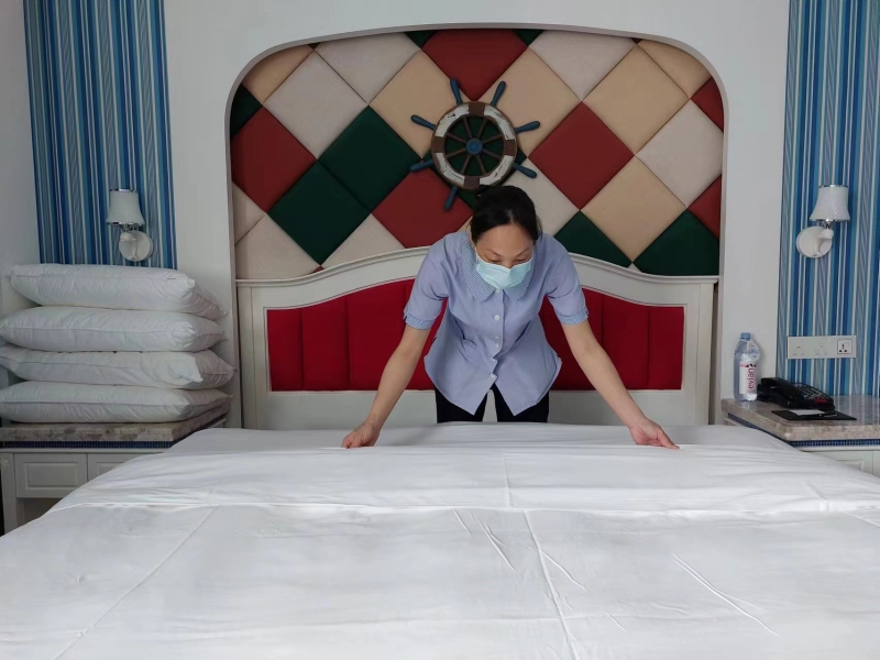 南光澳中旅下属富豪酒店房务员认真进行客房清洁整理。