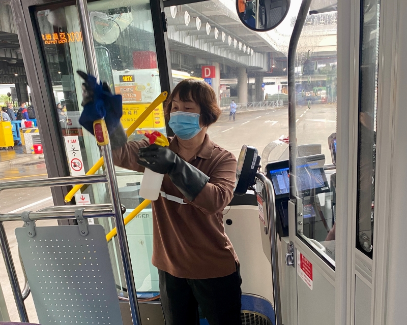 澳巴站头清洁员细心清洁每一个车厢,耐心检查每一个角落。