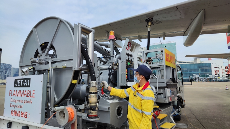 南光石油下属机场油库飞机加油员执行航煤质量检查程序,保障节日航煤供应质量。
