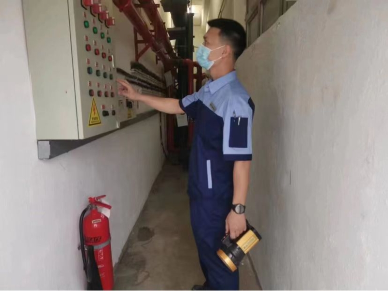 南光澳中旅下属酒店工程部员工例行检查酒店消防系统,以日复一日的坚守保障每位员工和住客的安全。