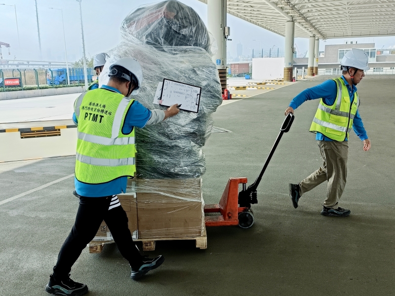 港珠澳大桥澳门跨境货物转运站营运工作人员元旦坚守,保障来往港澳货物安全通畅运行。