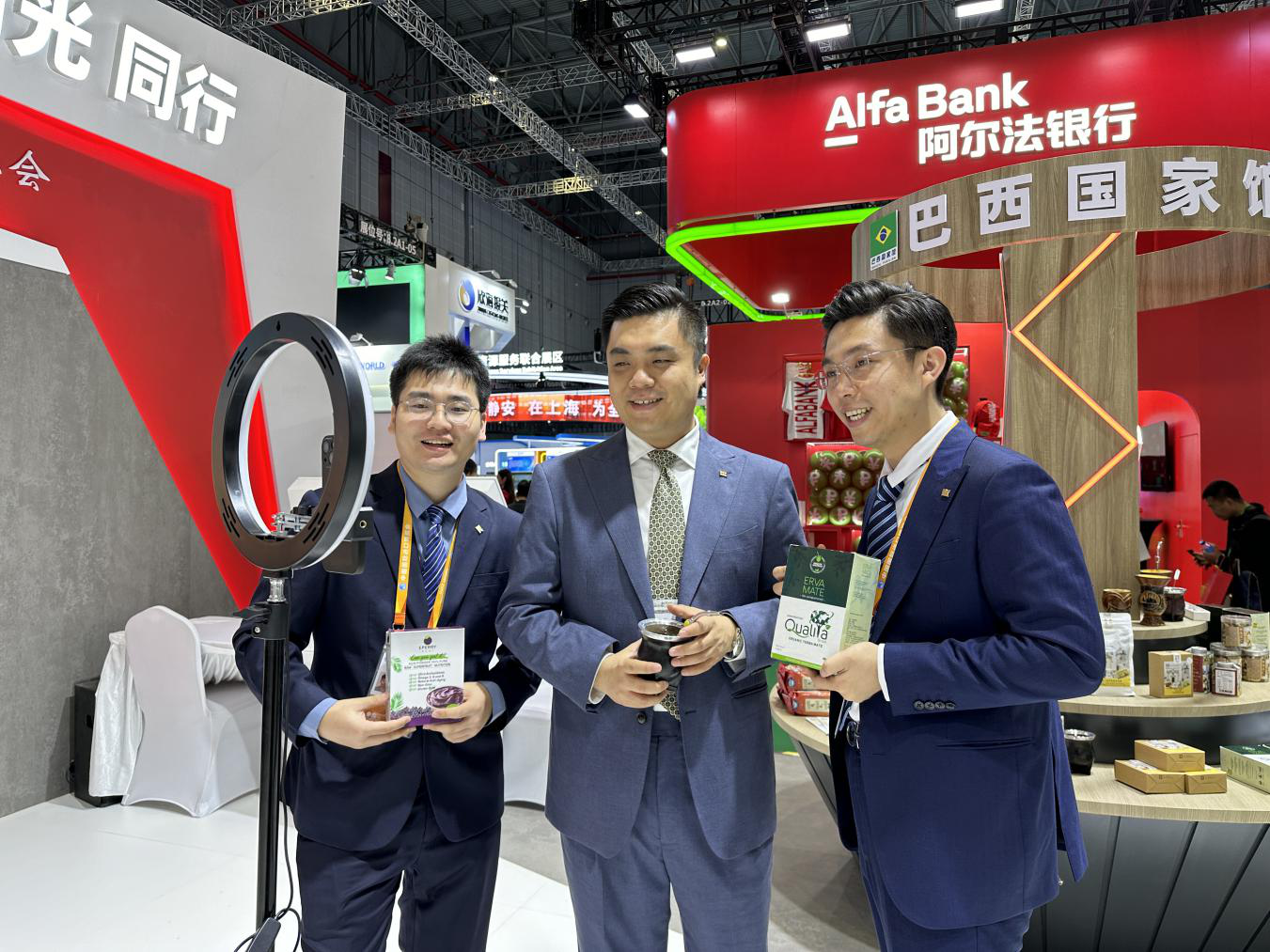 集团各业务线条共计四大类47个特色产品琳琅满目,创新开设的京东巴西国家馆商品直播更是吸引不少观众驻足。工作人员现场冲泡产自巴西的咖啡、马黛茶等特色饮品,详细介绍产自葡萄牙的红酒、进口矿石、皮草等外贸商品以及万豪轩曲奇、澳门IP主题盲盒等极具澳门特色的展品,更好呈现南光集团为助力澳门“一中心、一平台、一基地”建设、促进澳门经济适度多元发展和澳门融入祖国发展大局作出的贡献,也为集团各业务板块后续谋求商业合作争取更多机会。