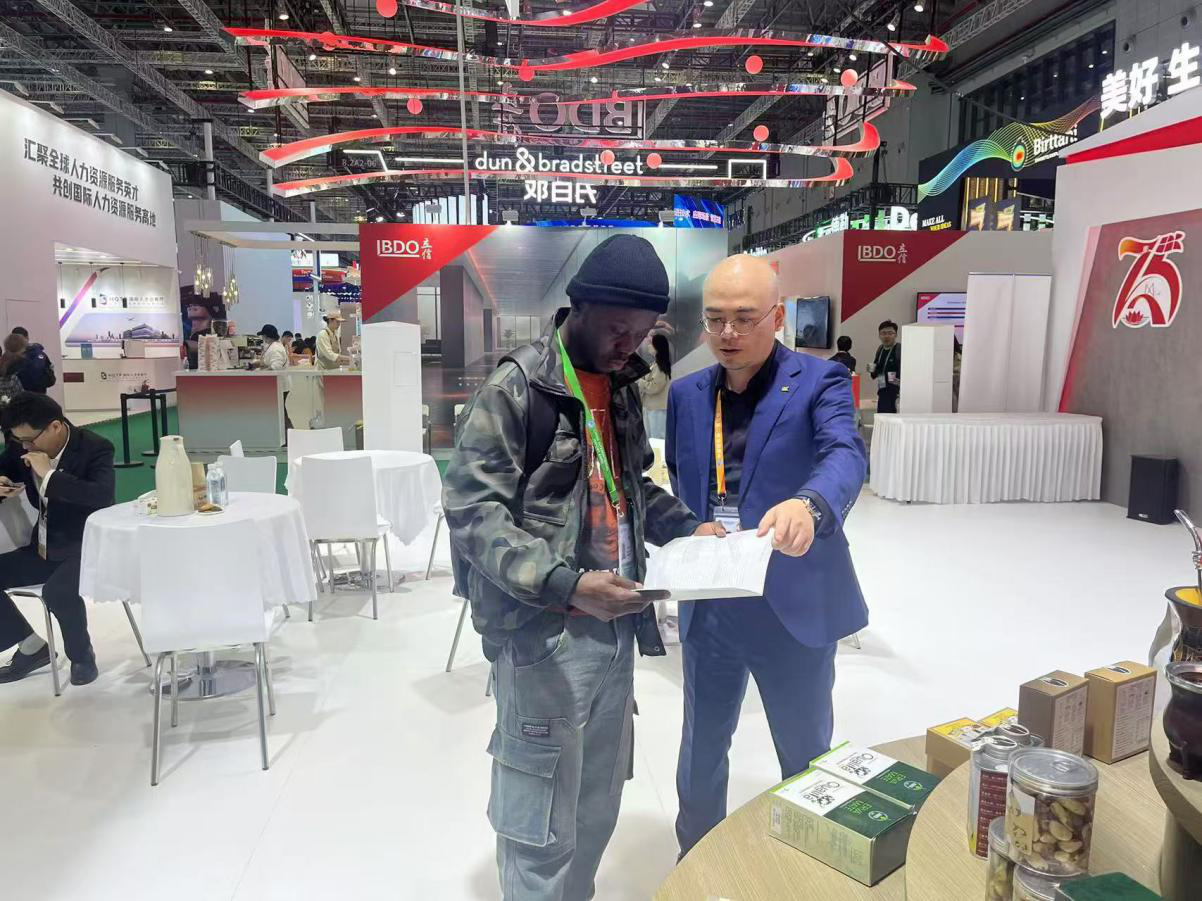 塞拉利昂贸易和投资特使Patrick Koroma莅临南光集团展台参观交流,回顾双方在木材和金红石型钛矿进口中国业务上的合作历程,希望双方充分利用在澳央企平台优势和塞拉利昂企业资源优势,共同推动中塞双边经贸发展,实现互利共赢。
