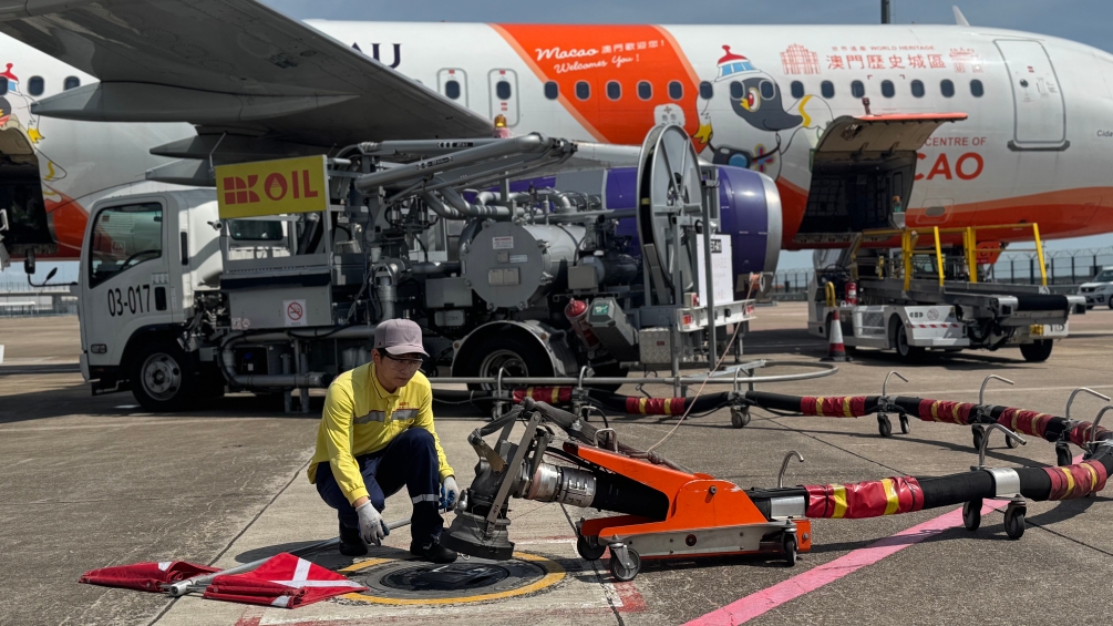 国庆期间航班量有所增加,机场油库的飞机加油员们每天提前到岗,检查加油车的油品质量、计量精度,随后驾驶加油车穿梭在各个停机位之间。“航煤保障讲究‘安全、准时、高效’,每一秒都不能耽误。看着满载世界各地乘客的飞机顺利起飞,我觉得自己的工作特别有意义。”正是这专业与坚守,为澳门国际机场的空中通道筑牢了能源保障屏障。