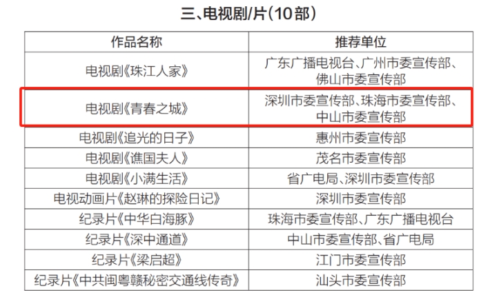 近期,由南光文创等联合出品的电视连续剧《青春之城》,在第十三届广东省“五个一工程”评选中脱颖而出,荣获优秀作品奖。