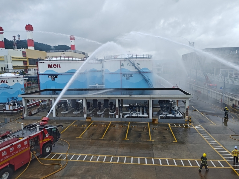 为进一步完善消防应急处置机制,增强快速响应和系统联动能力,近日,澳门国际机场举行“2025机场油库火警演习”,南光石油下属机场油库联合澳门特区政府海关、治安警察局、消防局、民航局以及澳门保安公司、澳门航空公司等单位共同参与并圆满完成演习任务。