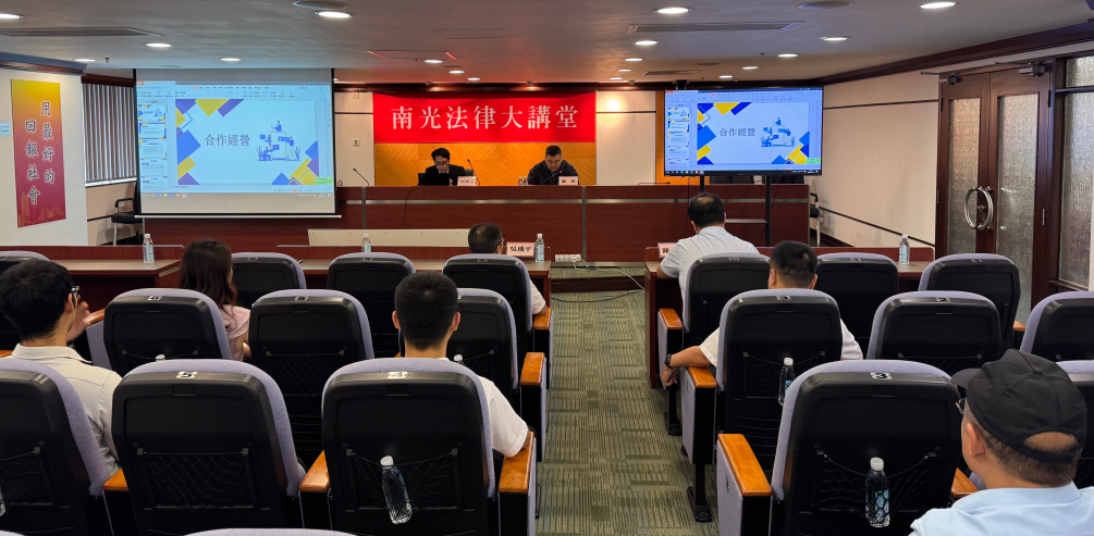为深入学习澳门《商法典》,提升依法合规经营管理能力,6月12日集团与南光石油共同举办第五十三期南光法律大讲堂,邀请南光石油常年法律顾问何建豪作专题讲座。会议会场设在南光大厦,采取现场和视频相结合的方式进行。集团审计内控-法律部、二级公司以及所属企业法律合规部门等有关人员约50人参加学习。